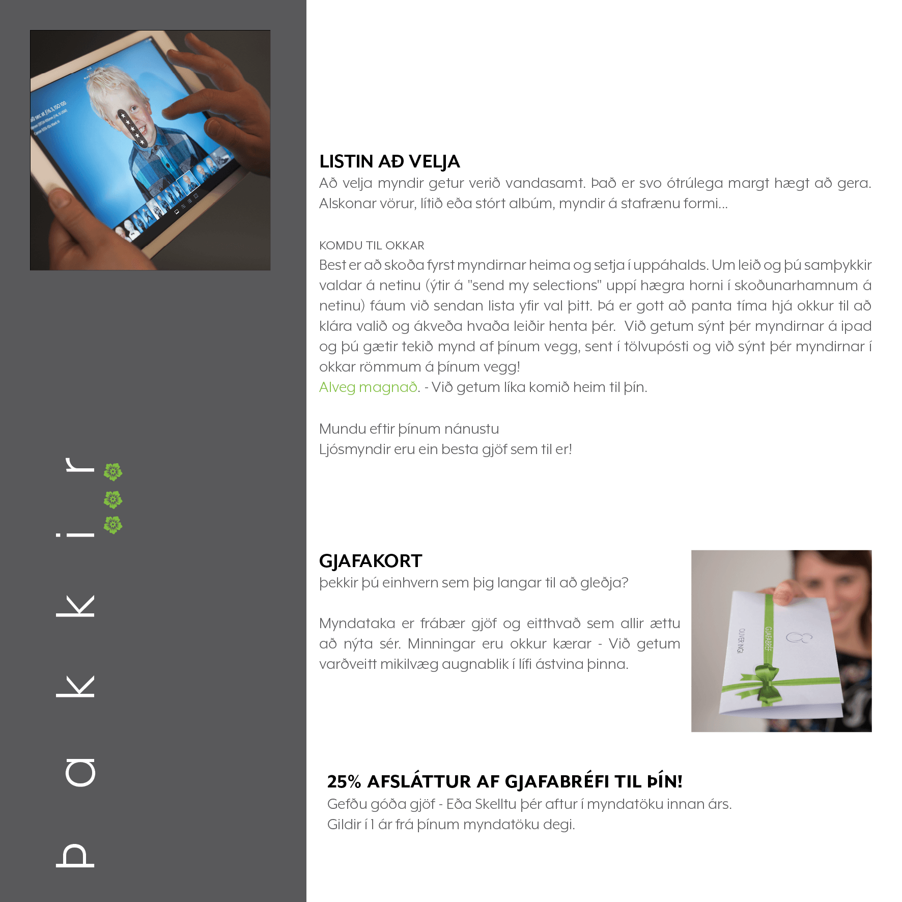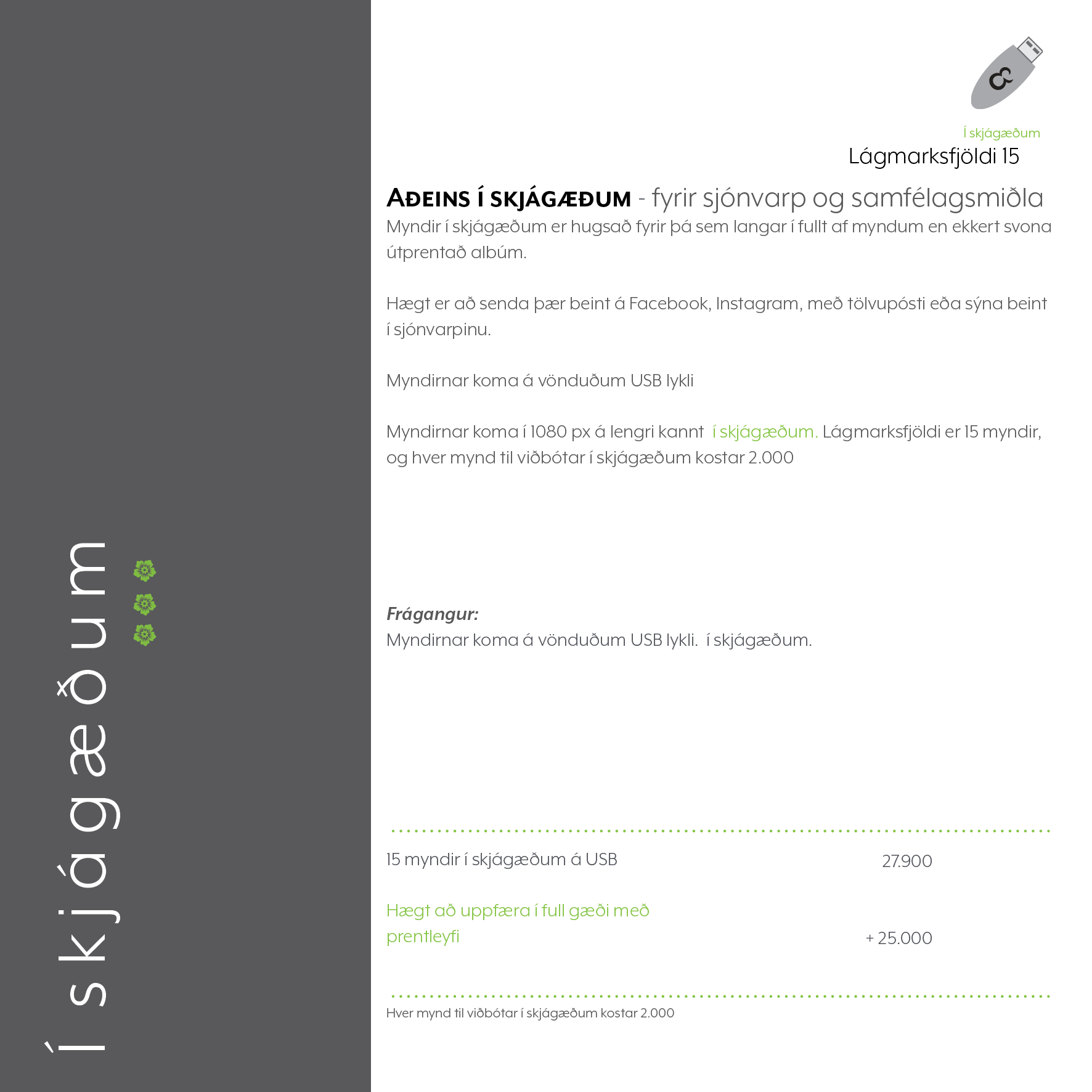 PANTAÐU SKOÐUNARTÍMA - þar getum við farið yfir allt það sem í boði er, fundið réttu myndirnar og spáð í þetta allt saman.